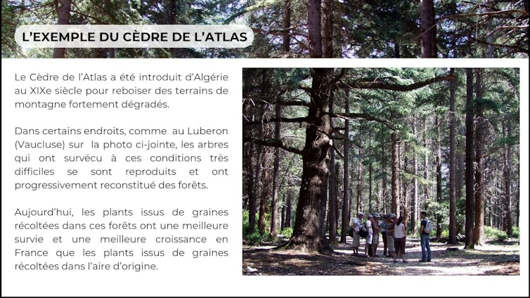 Le transfert de graines pour planter des arbres hors de leur aire d’origine est une pratique forestière ancienne. Les études rétrospectives de telles forêts révèlent une capacité d’adaptation à de nouvelles conditions après seulement une à quelques générations d’arbres. Ainsi chez le Pin maritime, espèce globalement sensible au froid, on a observé que les descendants d’arbres survivants de plantations artificielles faites dans le Nord-Est de la France étaient plus résistants au froid que les plants issus des forêts de l’aire naturelle.