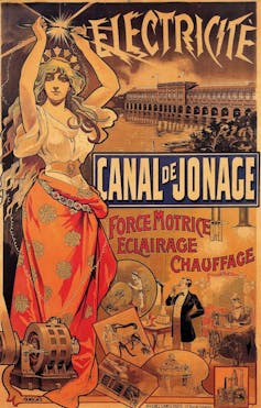Affiche de la fin du XIXᵉ siècle vantant l’énergie électrique.