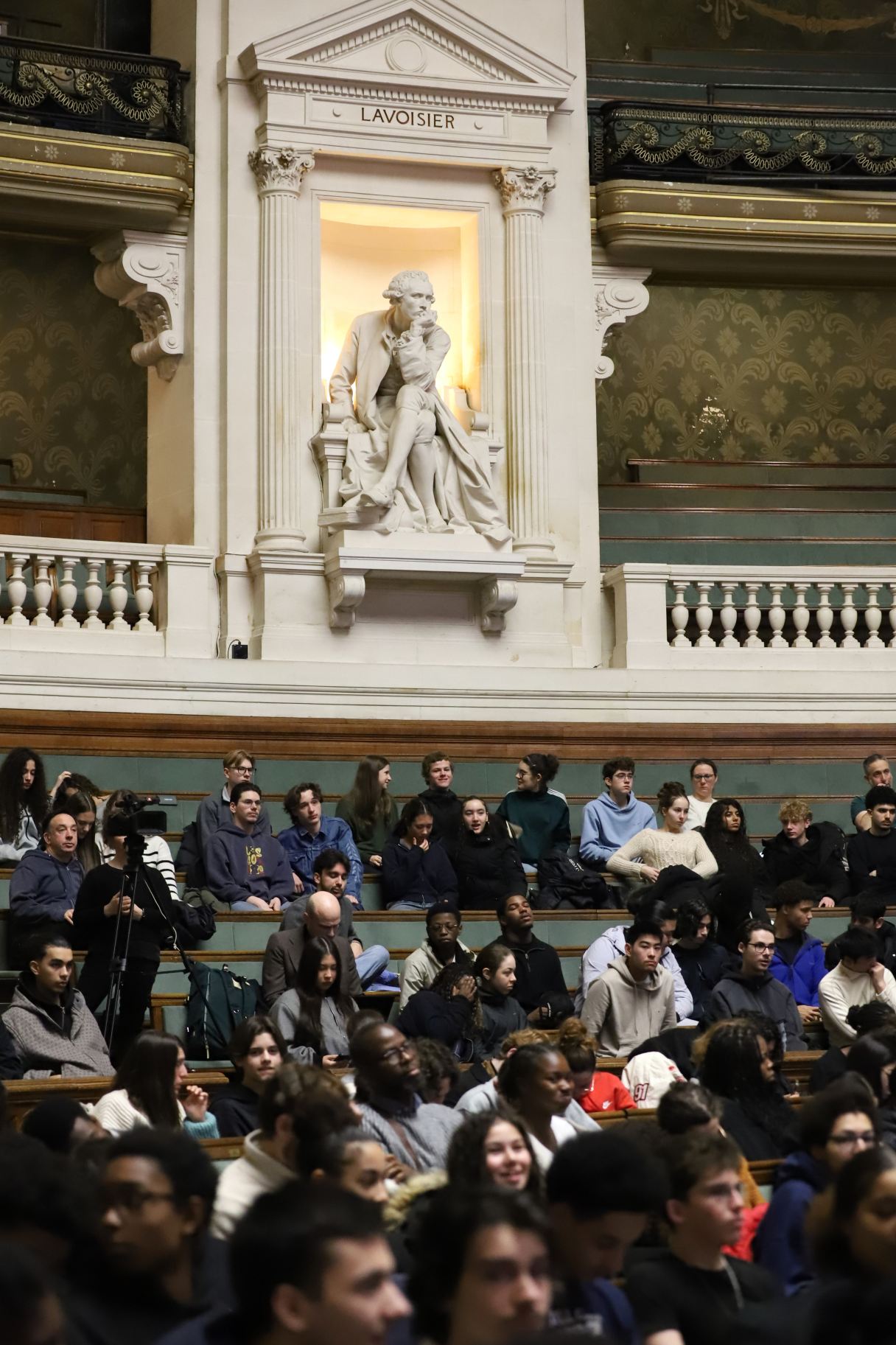Près de quatre cents lycéennes et lycéens des académies de Paris, Créteil et Versailles ont participé à la deuxième conférence-débat de la 6ᵉ édition du programme "Des académiciens en Sorbonne", organisée dans le cadre prestigieux du Grand Amphithéâtre de la Sorbonne.
